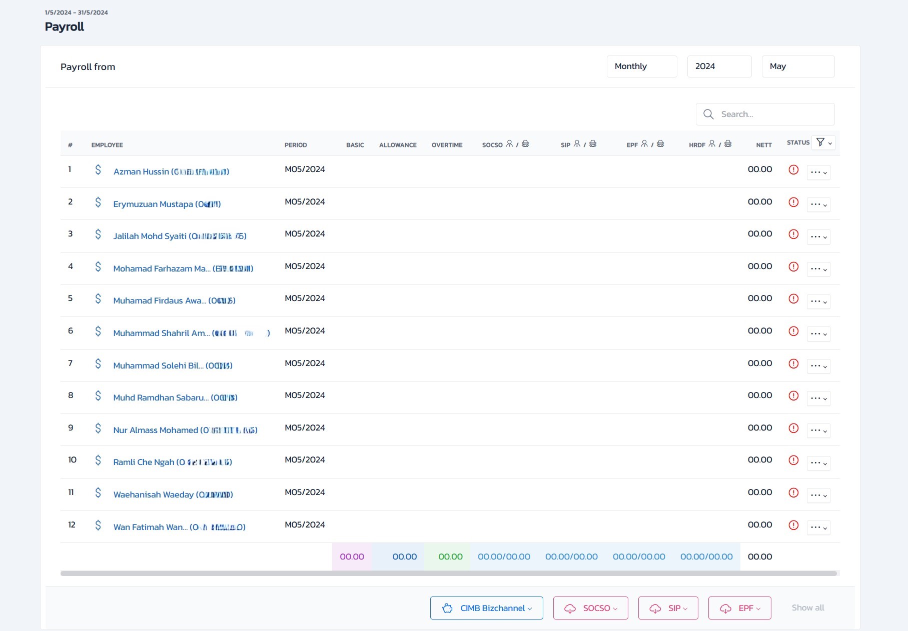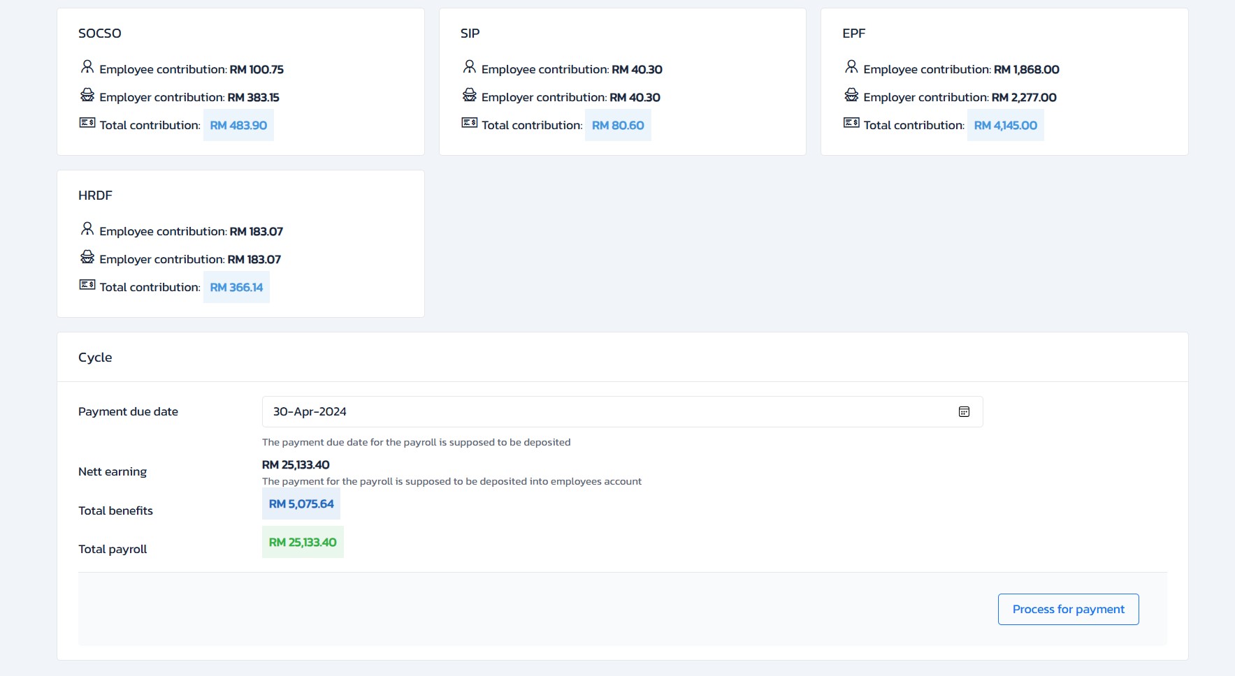 • EPF, SOCSO, EIS and HRDF